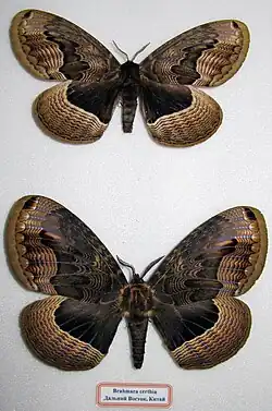 Brahmaea certhia, the Sino-Korean owl moth, is a moth from the family Brahmaeidae, the Brahmin moths. It is found in the Korean Peninsula and China.