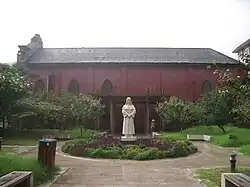 In the 1920s Hangzhou was also the object of some French missionary activity when a nun named Sister Hacard from the Sisters of Charity began to build a hospital compound on Hangzhou's Daomao Road (刀茅巷). It was founded in 1922 and gradually added to until 1928. The site also included a Gothic-style chapel which, with the one exception of a Marian statue it once contained, survived the Cultural Revolution remarkably intact, stained-glass windows and all. Sr. Hacard's hospital is now part of the Hangzhou City Red Cross Hospital that can be found enclosed by Daomao Road, Fengqi Road (凤起路), and East Huancheng Road (环城东路). While the hospital buildings are still in use as such, the chapel has not been used for religious purposes since before the Cultural Revolution and instead is now used by the hospital as a hall for giving presentations. A statue of Sr. Hacard has since been erected in the middle of a nearby garden and the chapel, being the only Gothic structure in all of Hangzhou, is today protected as a Provincial Historic Site.