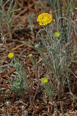 Chaenactis glabriuscula, with the common name yellow pincushion, is a species of flowering plant in the daisy family. It is native to California and Baja California.[2]