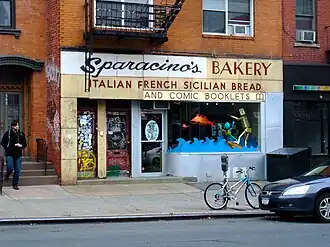 Desert Island was founded by Gabriel Fowler in 2008 in response to the lack of alternative comics stores in New York.[2] The store opened in a location formerly occupied by an Italian bakery, and maintains a modified version of the bakery's signage.[3] The store stocks a wide variety of underground and alternative comics, zines, artist's books, graphic novels, art magazines, and screenprints,[4] sold from both the store's own stock and on a consignment basis from individual artists.[2] The store's "no-restrictions consignment" was inspired by the eclectic selection of Quimby's Bookstore in Chicago,[2] which would open an additional location in New York in 2017 directly adjacent to Desert Island.[5][6] The business's storefront features rotating displays and art pieces by comic artists, including Lauren Weinstein and Marie Lorenz.[4]