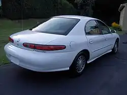 The Mercury Sable, a sister model of the Taurus aimed at a more upscale audience, was also redesigned for the 1996 model year. As with previous generations, the Sable used the same mechanical parts as the Taurus with a unique body. However, the 1996 Sable ditched the unique styling cues of the previous generations, specifically the front light bar, wrap-around rear glass and skirted rear fender, in favor of a design theme that more closely resembled that of the Taurus.[8] For the first time, the Sable did not get a unique interior design, instead sharing all of its interior components with the Taurus with the exception of branded parts and unique woodgrain trim. Trim levels were carried over from the previous generation: A base model GS and high-end LS, with a base G model briefly offered during the second half of the 1996 model year.[18] The Sable had the same powertrains and most features as the Taurus, though no counterpart to the high performance SHO was offered. Prices increased, corresponding with the increase in price of the Taurus. While the design of the Taurus was polarizing, the more conservative design of the Sable was praised; Automobile Magazine selected the Sable as its 1996 design of the year.[26] Unlike the Taurus, sales of the Sable stayed steady with the previous model, and styling revisions for 1998 were limited to a new grille and headlamps. The Taurus and Sable were produced concurrently through the 1999 model year.