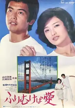 Furimukeba Ai (ふりむけば愛), also titled "Take Me Away!"[n 1] is a 1978 Japanese film starring Momoe Yamaguchi and Tomokazu Miura and directed by Nobuhiko Obayashi.[1] It is one of a series of idol films starring the golden combi (golden combination) of seventies idol film stars, Miura and Yamaguchi. It features the first foreign location and the first sex scene of the couple.[2]