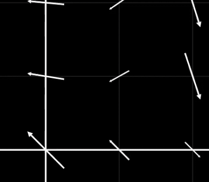 Lagrangian integration of the (Eulerian) flow field to find the particle trajectory. The integration scheme used here is the Euler method. In this example the flow field does not evolve in time.