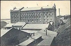 A large explosion occurred during the night shift on 7 February 1930. Flour dust exploded in the production shop and a large fire started. It took several days to put out the fire. The fire was caused by a random spark or a cigarette butt left burning, which caused the flour dust, suspended in the air, to detonate. In the same year, the Mill Descent street name was changed again to "7th February Street".[4]
