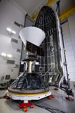 ![]() SPHEREx on a work stand, being prepared for launch | |