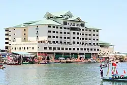This area also was long a main landing point for pirates.[2] Very few people lived on the coasts for fear of these marauders,[2] as they roamed the seas, kidnapping, raiding and killing.[2] Action by Sir James Brooke, and other western colonial powers such as the Dutch and Spanish, managed to successfully combat the pirates over the course of the 1800s.[2] Upon the advent of the Chartered Company in the early 1880s, only one pirate stronghold remained at Omadal island, which was defeated by HMS Zephyr in 1886.[2] By mid 1887, a trading station on the southern side of the entrance to Darvel Bay was established.[2] With pirates having recently destroyed the settlement of Maimbung in Sulu, some of the Chinese merchants there asked for permission to settle in the Company's territory, under the rule of law and its resulting security.[2] Semporna was the site of a small-scale migration of Chavacano speakers from Zamboanga, fleeing the Malaysia-funded Moro Conflict between Muslim rebels and the Philippine government. These Chavacanos speak a Creole of Mexican-Spanish[4] and are partially descended from Peruvian settlers mixed with indigenous Filipinos[5] from the former Rajahnate of Sanmalan.[6]