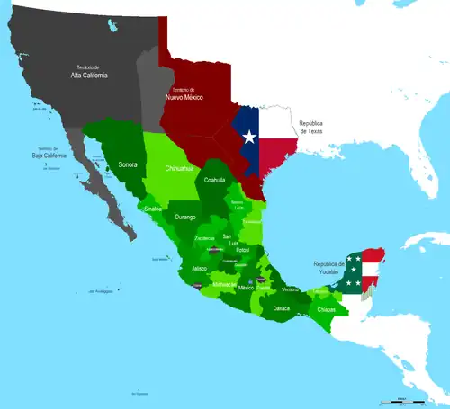 - The following maps do not show the separation of Zacatecas (in 1835) and Tabasco (in 1841–1842), which never became independent republics and were never proclaimed as such.