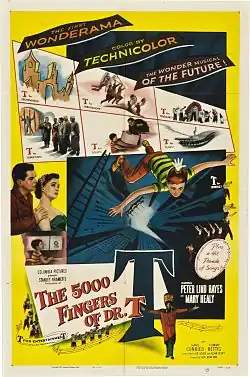 The 5,000 Fingers of Dr. T. (also known as Crazy Music in the 1958 reissue) is a 1953 American musical fantasy film about a boy who dreams himself into a fantasy world ruled by a diabolical piano teacher enslaving children to practice piano forever. It is the only non-documentary feature film written by Theodor Seuss Geisel (Dr. Seuss), who wrote the story, screenplay, and lyrics. It was directed by Roy Rowland, with many uncredited takes directed by producer Stanley Kramer. The film stars Peter Lind Hayes, Mary Healy, Hans Conried, and Tommy Rettig.