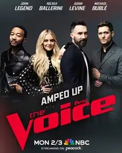 ![]() Promotional poster featuring coaches Legend, Ballerini, Levine, and Bublé | |