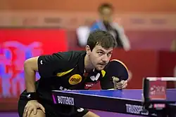 Timo Boll (German pronunciation: [ˈtiːmo ˈbɔl], ⓘ; born 8 March 1981) is a German former professional table tennis player. Boll is the most successful German table tennis player of all time, having won several medals at Olympic Games, world cups, and world championships.[4] He was ranked world No. 1 in 2003, 2011 and in March 2018.[5]