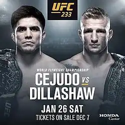 - ^ Staff (2018-11-26). "Henry Cejudo vs. T.J. Dillashaw flyweight title fight official for UFC 233 in Anaheim". mmajunkie.com. Retrieved 2018-11-27.