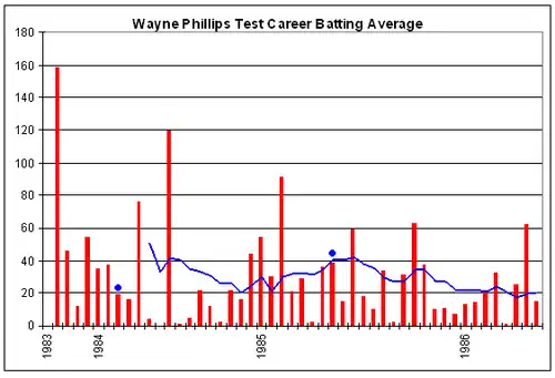 Wayne Bentley Phillips (born 1 March 1958) is a former Australian cricketer who played in 27 Test matches and 48 One Day Internationals (ODIs) between 1982 and 1986 as a batsman and wicket-keeper. He played for South Australia between 1978 and 1991.