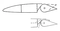 The aeroplane was a high-wing monoplane, of canard configuration. Two intakes, positioned midway along the fuselage, fed air to two high-pressure turbines, powered by a pair of 52 hp (39 kW) two-stroke engines. The compressed air was then expelled out over full-span flaps that formed the trailing edges of both the forewing and the main wing.[2] The aeroplane featured a fully faired fuselage, an enclosed cockpit, a central tailfin, and a fixed tricycle undercarriage.[3][4]