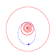 Orbit of Ganymed (blue), with the inner planets and Jupiter (outermost).