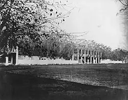 The Union commander struck back with a bombardment against the Confederate positions on 22 and 23 November. Companies G and H and a detachment of the regiment, all under the command of Jacques, manned the batteries at the Navy Yard and opened up a return fire,[26] but did not inflict much damage on Fort Pickens due to lack of gunnery practice caused by shell shortages. Adams held the troops not needed to serve the guns in readiness to repulse a possible Union landing. Fort McRee suffered severe damage,[27] but the Navy Yard batteries were relatively untouched.[28] Pensacola remained quiet for the next few weeks until 1 January 1862, when a steamer docking at the Navy Yard drew Union fire, causing the inebriated Richard Anderson, in command while Bragg was away on inspection, to order a return bombardment. When Bragg returned he reprimanded Anderson, who had apparently forgotten about the inferiority of the Confederate artillery exposed in the November exchange, for wasting ammunition.[29][30]