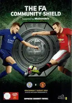 The 2016 FA Community Shield (also known as The FA Community Shield supported by McDonald's for sponsorship reasons) was the 94th FA Community Shield, an annual English football match played between the winners of the previous season's Premier League and FA Cup. The match was contested by 2015–16 FA Cup winners Manchester United, and Leicester City, champions of the 2015–16 Premier League. It was held at Wembley Stadium a week before the Premier League season kicked off. Manchester United won the match 2–1 with goals from Jesse Lingard and Zlatan Ibrahimović, either side of a goal from Leicester striker Jamie Vardy.