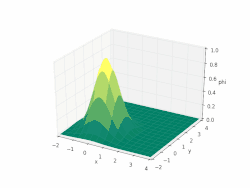 A simulation of the advection equation where u = (sin t, cos t) is solenoidal.