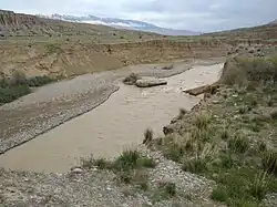 It is 180 kilometres (110 mi) long, and has a drainage basin of 5,820 square kilometres (2,250 sq mi).[2] It has an average elevation of 3,290 metres (10,790 ft), an annual average flow rate of 31 cubic metres per second (1,100 cu ft/s), and an average specific discharge of 8.35 L/s•km2.[3]