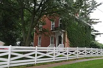 The Alexander Organ House is a historic residence located in Maquoketa, Iowa, United States. It is one of several Victorian houses in Maquoketa that are noteworthy for their quoined corners, a rare architectural feature in Iowa.[2] Built around 1896, the 212-story brick house follows an L-shaped plan. It features a 112-story wing in the back, quoining with cream-colored brick, limestone foundation, gable roof, a polygonal bay window on the east elevation, and a bracketed canopied porch with cresting on the main facade. Organ worked as a clothing merchant. This house was one of many houses built during Maquoketa's economic expansion in the late 19th century. It was listed on the National Register of Historic Places in 1991.[1]