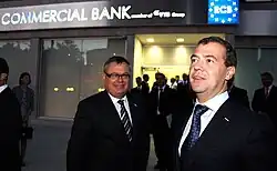 Kostin and Russian President Dmitry Medvedev at an opening ceremony of the Russian Commercial Bank in Cyprus in 2010
