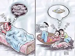 Sleep and dream. This cartoon describes the difference between the poor and the richest, and the difference between their dreams and goals. One of the Arifur Rahman's earlier cartoons from 2008.