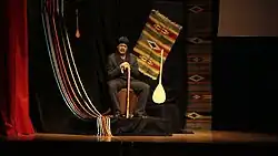 From about the age of 8,[4] Veysel's education was continued by his father's friend, Çamışıhlı Ali Ağa, also called Âşık Ali.[6][8] Ali, who lived in abject poverty, earned his living as an itinerant saz teacher, and would frequently obtain lodgings by staying in students' homes across the Emlek region.[4] He came to Sivrialan around the winter of 1902 to 1904, when Veysel was 8 or 10 years old. At this time, Alevi religious gatherings and similar festivities were frequently held in Sivrialan, and Veysel often attended out of his love for music and conversation. At one such gathering, where Âşık Ali was present, the young Veysel was for unknown reasons expelled from the assembly with the invective, "get out, blind boy!"[4] Such insults were common in Anatolian peasant villages, including Sivrialan; Veysel's nickname there was "Blind Veysel" (Turkish: Kör Veysel), and he was occasionally called "Blind Boy" (Turkish: Kör Oğlan) to his face, usually (though not always) as an insult, regardless of Veysel's personal feelings on the matter.[4] In one account,[19] though very poorly attested, the reason for Veysel's expulsion was that he had, in his intrigue and his blindness, gotten too close to the speaker at the gathering, and his unkempt and smallpox-ravaged appearance had offended one of the villagers, who allegedly slapped him. Regardless of the true reason, Âşık Ali took pity on Veysel. Ali made a saz and gave it to Veysel, then spent the year by Veysel's side, teaching him the basics.[4]