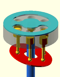 • Mating surfaces. One end of the cylinder block is convex and wears against a mating surface on a stationary valve plate. The inlet and outlet fluid of the pump pass through different parts of the sliding interface between the cylinder block and valve plate. The valve plate has two semi-circular ports that allow inlet of the operating fluid and exhaust of the outlet fluid respectively.