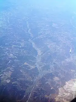 The Yan River flows through the district from northwest to southeast, from Hezhuangping to Qiaogou Subdistrict.[5]: 62 [8][9]: 1469  It then flows from the district's center to its northeast, through Chuankou, Liqu, Yaodian, and finally through Ganguyi.[5]: 62 [8][9]: 1469  The total length of the river's flow through Baota District is 62 kilometres (39 mi),[5]: 62  and it forms basin area in the district's north that totals 2,203.68 square kilometres (850.85 sq mi) in area.[5]: 62 [9]: 1469  The district's other major river is the Fenchuan River (Chinese: 汾川河; pinyin: Fénchuān Hé), which flows from Nanniwan to Yichuan County and into the Yellow River.[5]: 263 [9]: 1469  The Fenchuan Canal (Chinese: 汾川渠; pinyin: Fénchuān Qú), a small canal off the Fenchuan River which irrigates nearby land, flows through Madongchuan, creating the Jinpenwan Reservoir (Chinese: 金盆湾水库; pinyin: Jīnpénwān Shuǐkù).[5]: 268