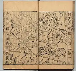 - ^ Lü Bu was referring to an incident in which he prevented a conflict between Liu Bei and Yuan Shu (represented by Ji Ling) through a gamble. In the gamble, he would fire an arrow through an opening in the blade of his ji from a distance of about 100 paces. If his arrow passed through the opening, Liu Bei and Ji Ling would have to withdraw their forces and make peace. If he failed, then Liu Bei and Ji Ling could prepare for war. Lü Bu succeeded and prevented the conflict. He saw himself as having saved Liu Bei's life because Yuan Shu's forces were more powerful than Liu's at that time, and he was implying that now that he was about to be executed, Liu should also save him.
