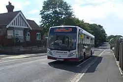 The nearest railway station is Moulsecoomb, which is about 10 minutes walk from many of the residential streets.[9] The Compass Bus route 37B from Brighton railway station runs up Bear Road and Bevendean Road to terminate at Meadowview, while Brighton and Hove Buses route 38 starts from Meadowview and run via Coombe Road to Lewes Road, from where it continues in a loop around the New England Quarter to Brighton railway station.[43] Bus journey times to the city centre are about 30 minutes.[2] Heavy traffic along Lewes Road and Bear Road contrasts with the quieter environment of the terraced streets coming off them,[28] but there is much on-street car parking as most houses lack their own off-street facilities.[9]