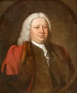 Henry Beavis, Mayor of Barnstaple in 1738 and 1751, father of Col. Henry Beavis of Yeotown, Goodleigh, North Devon, who was father-in-law of Robert Newton Incledon (1761–1846). Portrait by studio of Thomas Hudson (1701–1779), Collection of Barnstaple Town Council, displayed in Barnstaple Guildhall