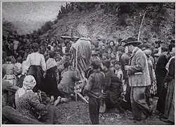 Residents mostly abandoned Boscotrecase.[10] Some residents formed a long procession and brought the statue of Sant'Anna, the patroness of Bosctrecase,[11]: 22  to avert the lava flow. While the Church of Sant'Anna was surrounded by lava, most of Boscotrecase was spared.[11] The flow that aimed at Casavitelli and Annunziatella was diverted by Vallone Izzo, a valley immediately below town. The flow that aimed at Oratorio stopped at a lava stone quarry.