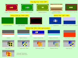 Following nationalisation in 1948, British Railways began to adapt the corporate liveries on the rolling stock it had inherited from its predecessor railway companies. Initially, an express blue (followed by GWR-style Brunswick green in 1952) was used on passenger locomotives, and LNWR-style lined black for mixed-traffic locomotives, but later green was more widely adopted.[41][42]