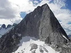 Bugaboo Spire is a peak in Bugaboo mountain range in Canada, located between the Vowell and Crescent glaciers, just under 2 km West of the ACC's Conrad Kain hut. It is known for its alpine climbing. The Spire was first climbed by Conrad Kain in 1916.