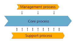 These three process types can be identified in every company and are used in practice almost without exception as the top level for structuring business process models.[5] Instead the term leadership processes the term management processes is typically used. Instead of the term execution processes the term core processes has become widely accepted.[2] (Chapter 6.2.1 Objectives and concept) ← automatic translation from German,[6] (Chapter 1.3 The concept of process) ← automatic translation from German,[7] (Chapter 4.12.2 Differentiation between core and support objectives) ← automatic translation from German,[8] (Chapter 6.2.2 Identification and rough draft) ← automatic translation from German