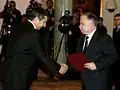 Cabinet of Kazimierz Marcinkiewicz was appointed on 31 October 2005[1] and passed the vote of confidence in parliament on 10 November 2005. It was supported by 272 votes with 187 votes against (no abstentions).[2] This minority government was ruled by politicians of Law and Justice and some independents e.g. Zbigniew Religa.