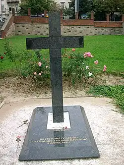 Below the churchyard was one of Belgrade's air raid shelters. During the German bombing of Belgrade on 6 April 1941, bombs directly hit the churchyard, killing 200 people. A memorial marble cross commemorating the victims was built in the 1970s.[1] It was also hit during the bombing of Belgrade by the Allies in 1944.