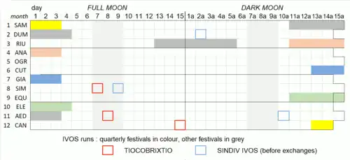 The notation IVOS is also sequentially dragged upwards a month in the post-intercalary year. However, it does not take all the other notations with it. This keeps the festival runs marked with IVOS intact. The same also applies to SINDIV IVOS.