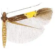 Female. Forewing length 4.0 mm. Head: frons shining ochreous-grey with greenish and reddish and reflections, vertex and neck tufts dark bronze brown with reddish gloss, collar dark bronze brown; labial palpus first segment very short, ochreous-grey, second segment three-quarters of the length of third, dark brown with white longitudinal lines laterally and ventrally, third segment white, lined dark brown laterally; scape dorsally shining dark brown with a white anterior line, ventrally shining white, antenna shining dark brown with a white line from base to beyond one-half, interrupted in middle, followed towards apex by five dark brown segments, six white, two dark brown, two white, ten dark brown and eight white segments at apex. Thorax and tegulae shining dark bronze brown with reddish gloss. Legs: dark brown with reddish gloss, femora of midleg and hindleg shining ochreous-grey, foreleg with a white line on tibia and tarsal segments one and two, segment four with white apical spot, segment five entirely white, tibia of midleg with white oblique basal and medial lines and a white apical ring, tarsal segments one, two and four with white apical rings, segment five entirely white, tibia of hindleg with a white oblique medial line and a white apical ring, tarsal segment one with a white basal spot and an ochreous apical ring, segments two and three with ochreous apical rings, segment four dorsally and segment five entirely ochreous-white, spurs white, ventrally greyish brown. Forewing dark bronze brown with reddish gloss, three white lines in the basal area, a subcostal from base to one-quarter, slightly bending from costa in distal half, a short medial above fold, ending just beyond the subcostal, a subdorsal below fold, about as long as the medial, but slightly further from base, some indistinct white edging on dorsum beyond base, and sometimes an indistinct and very narrow short costal just before the transverse fascia, but not connected with it, a broad yellow transverse fascia beyond the middle with a very small and narrow apical protrusion, bordered at inner edge by two pale golden metallic tubercular subcostal and subdorsal spots the subcostal spot outwardly edged by a small patch of blackish brown scales, the subdorsal spot slightly further from base and a little larger than the costal, bordered at the outer edge by two similarly coloured costal and dorsal spots, the dorsal spot three times as large as the costal and more towards base, both spots inwardly partly lined dark brown, a white costal streak from outer costal spot, a narrow apical line from or just beyond the apical protrusion, slightly widening towards apex, cilia dark brown around apex, paler towards dorsum. Hindwing shining dark greyish brown. Underside: forewing shining greyish brown, the white streak in the apical cilia distinctly visible, hindwing shining greyish brown. Abdomen dorsally greyish brown, mixed orange, segments banded greyish brown posteriorly, laterally greyish brown, ventrally shining dark grey, segments banded shining white posteriorly, anal tuft brownish grey.[1]
