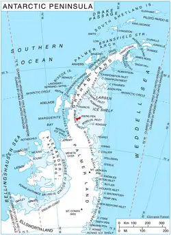 Location of Joerg Peninsula in Graham Land, Antarctic Peninsula.