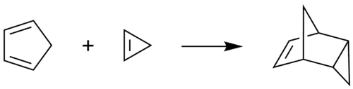 Cyclopropene undergoes the Diels–Alder reaction with cyclopentadiene to give endo-tricyclo[3.2.1.02,4]oct-6-ene. This reaction is commonly used to check for the presence of cyclopropene, following its synthesis.[9]