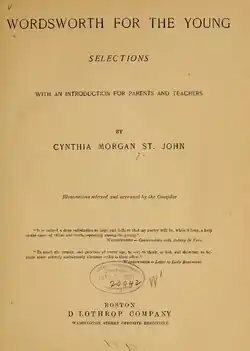 Cynthia Morgan St. John (née, Morgan; October 11, 1852 – August 10, 1919) was an American Wordsworthian, book collector, and author.[1] In her day, she owned the largest and most valuable Wordsworth library in the U.S.[2][3] she was engaged in collecting books for 40 years.[4]