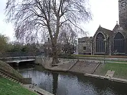 The town centre lies in a valley through which the River Darent flows[2] and where the old road from London to Dover crossed: hence the name, which derives from Darent + ford. Dartford became a market town in medieval times and, although today it is principally a commuter town for Greater London, it has a long history of religious, industrial and cultural importance. It is an important rail hub; the main through-road now by-passes the town itself.