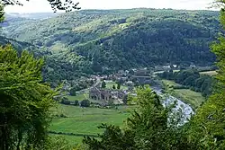 The Devil's Pulpit is a rocky limestone outcrop and scenic viewpoint in the Forest of Dean District of Gloucestershire, England, within the Wye Valley Area of Outstanding Natural Beauty. It is known for its views across the River Wye to Tintern Abbey, which stands on the opposite bank in Monmouthshire, Wales.