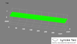 As DHM measures the 3D surface topography over the full field of view within a single camera acquisition, there is no need for scanning, neither vertical, nor lateral. Consequently, dynamic changes of topography are measured instantaneously. The acquisition rate is only limited by the camera frame. Measurements have been demonstrated on many types of samples such as smart surface, self-healing surfaces, not equilibrium systems, evaporation processes, electrodeposition, evaporation, crystallization, mechanical deformation, etc.[36][37]