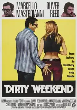 Dirty Weekend (Italian: Mordi e fuggi) is a 1973 Italian comedy film directed by Dino Risi.[5] Described by Roberto Curti as a road movie and crime film, Dirty Weekend addresses the topic of terrorism and violence.[1]