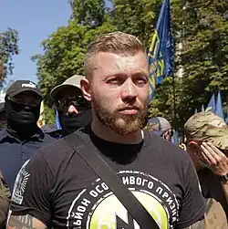 Dmytro Vasylovych Kukharchuk (Ukrainian: Дмитро Васильович Кухарчук; born 4 June 1990) is a Ukrainian politician, member of the Supreme Council of the political party National Corps, political prisoner in the so-called case of Cherkasy veterans[1] and commander of the second battalion of the 3rd Assault Brigade.[2]