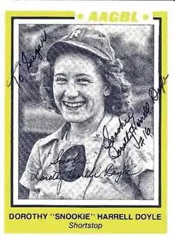 Dorothy Harrell (February 4, 1924 – September 15, 2011) was a shortstop who played in the All-American Girls Professional Baseball League. Listed at 5 4", 127 lb., Harrell batted and threw right-handed. After being married she played under the name of Dorothy Doyle.[1][2]