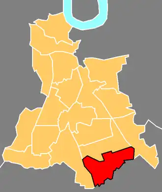 The ward of Downham (red) shown within the London Borough of Lewisham(yellow)