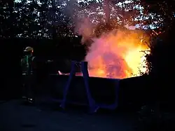 The term "dumpster fire" is derived from fires that start in trash bins, referred to in the United States as "dumpsters".